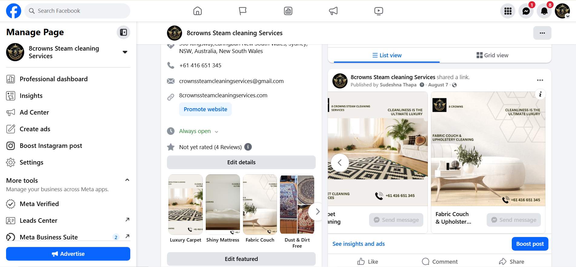 Challenge: 8 Crowns Steam Cleaning Services needed a site that supported conversions and stronger placement in multiple cities.
